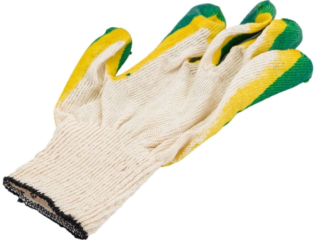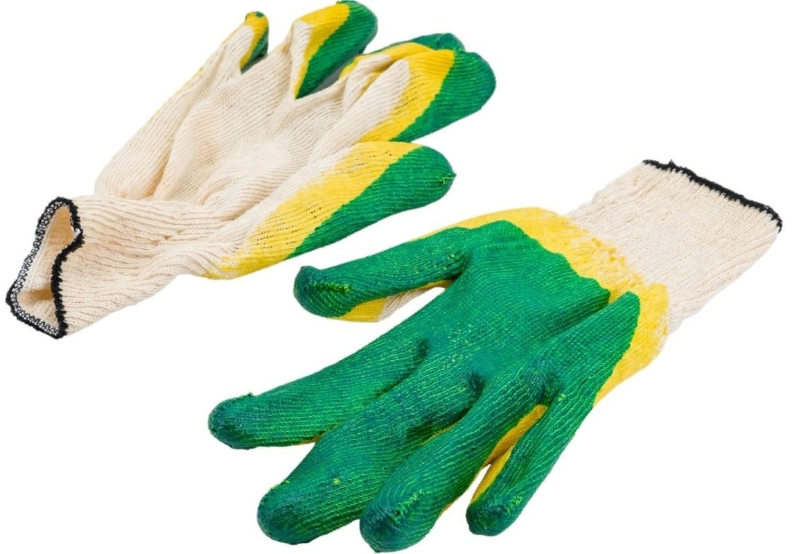 Перчатки рабочие реализуются в индивидуальной упаковке. Изготовлены из х/б и латекса.